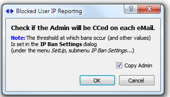 This area deals with processing out an eMail when the offending IP has just been blocked. The actual thresholds for blocking are set in the IP blocking dialog.