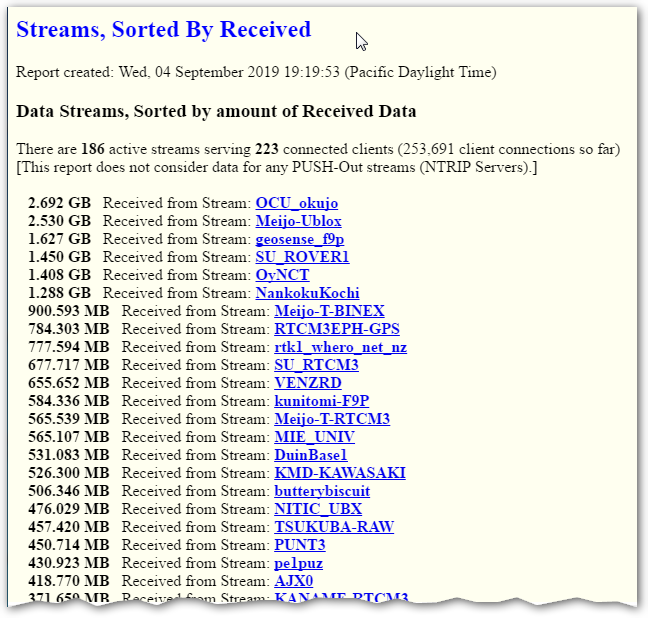 Note: The report images used above were taken from the RTK2go.com node on Sept 5th 2019,