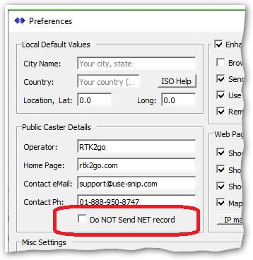 From an operator request to not share details about Caster ownership in the Caster Table, we have added a new control (in the Preferences dialog) This added a “Do NOT send NET record” checkbox to the caster details section. When checked, no NET records are sent in the Caster table. For most operators this function is not desired because they use the Public Caster Details to inform others regarding how to contact them.